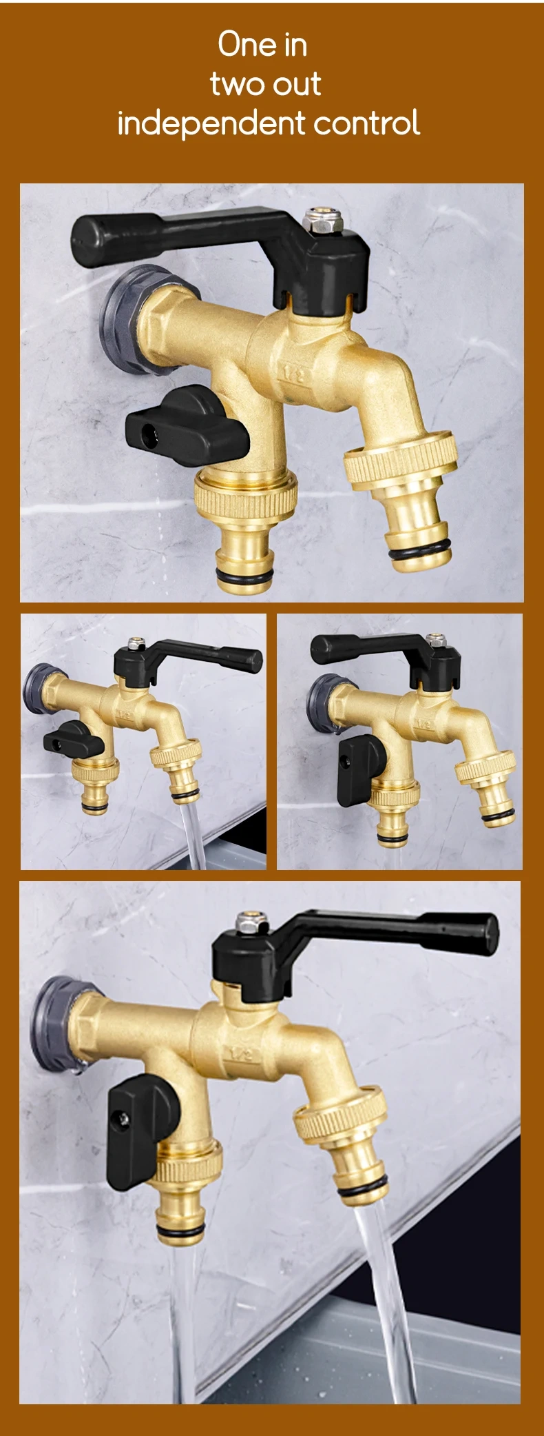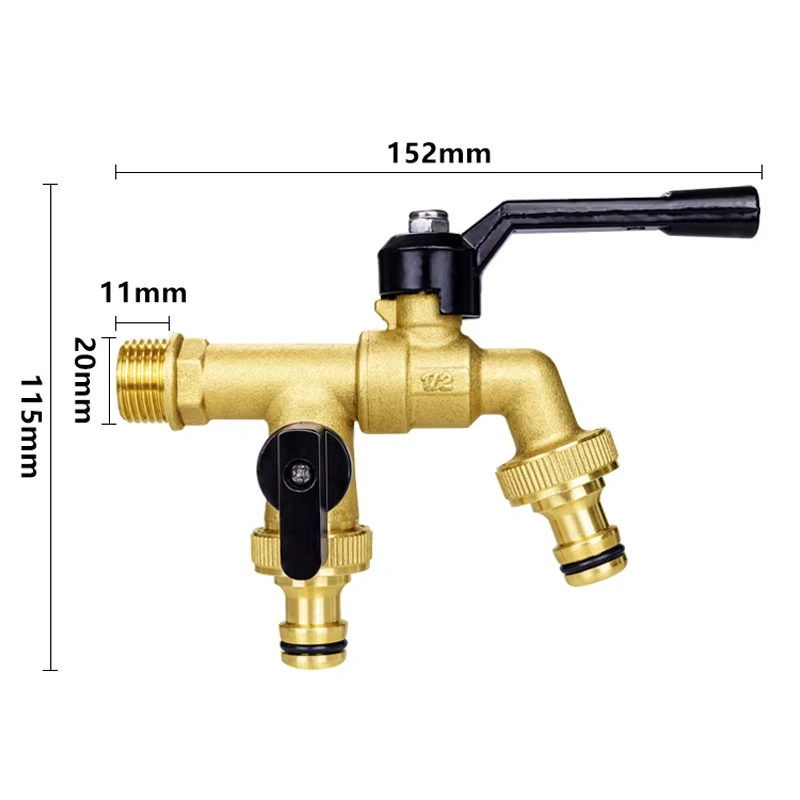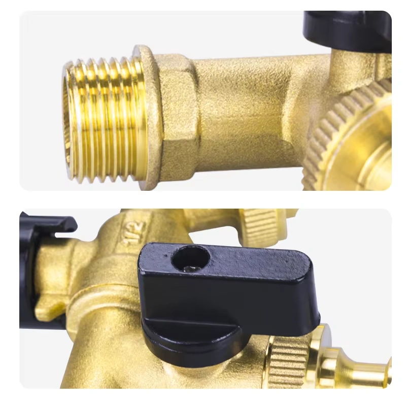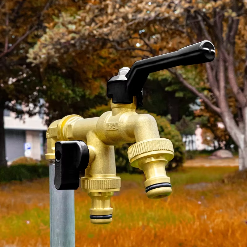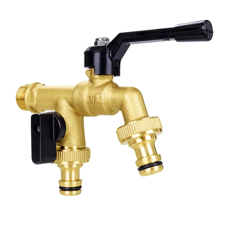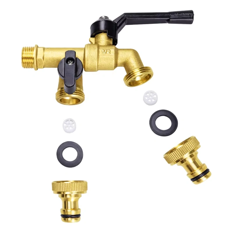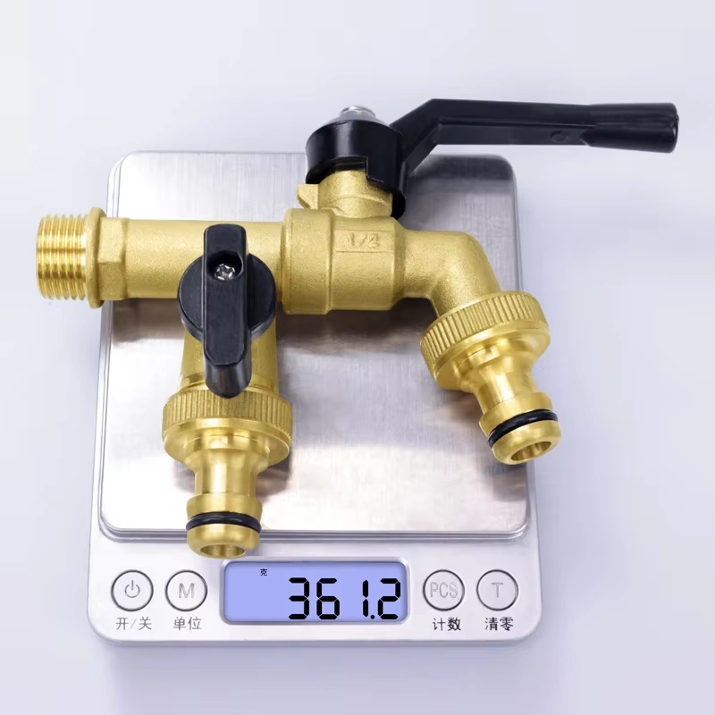 The brass dual outlet faucet features a single-inlet, dual-outlet design constructed from high-quality brass. This material choice provides excellent corrosion resistance and mechanical strength, enabling the faucet to maximize the utilization rate of a single water supply point while ensuring long-term reliability in various application environments.